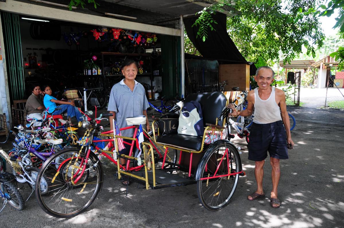 Apart from the normal check-up which I do it myself, I will send my trishaw to these gentlemen for monthly services (due to the many number of trips I made). They insist of doing it for me for free of charge unless there is something major to be changed. Guess I am afraid to get stuck along the highway while on training, where there is no shop, only a few food and fruit stalls. I’m usually armed with a bicycle pump, a spare tyre and tube plus some tools during training.
